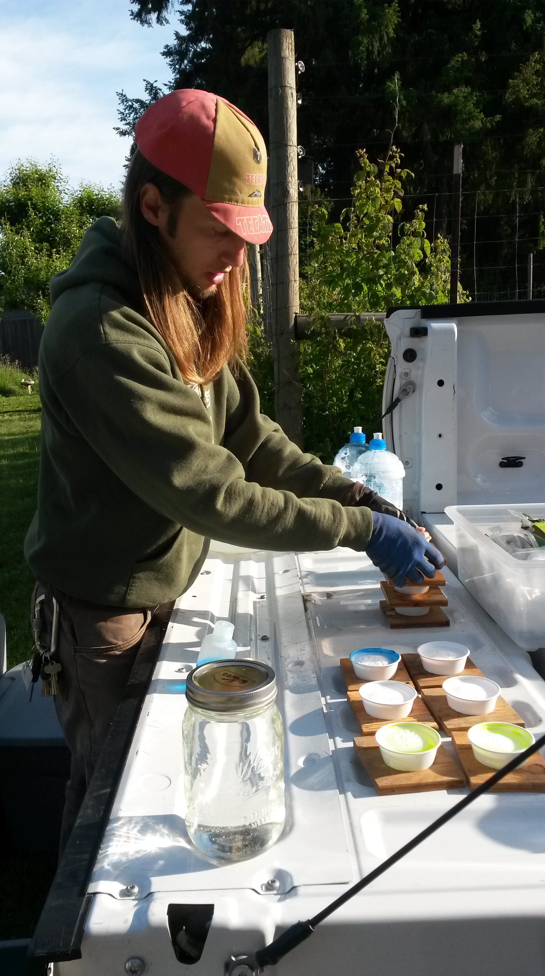 We had a visit from Eli the bee guy today! Eli is a PhD candidate from WSU, studying abundance and diversity of native pollinators. Today was his annual spring pollinator survey-he’s been studying the farm over the course of three years. Because we don’t use pesticides or chemical inputs, we enjoy a wide variety of native pollinators helping bring food to the table.