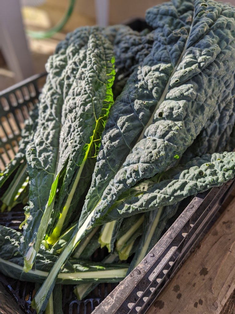 Kale’s hitting boxes this week!! That’s a great thing, because kale is super healthy and so versatile. If you’re going for five fruits and veggies a day, kale is an easy addition to get you there, from adding fresh smoothies to sauteing for scrambled eggs, adding to burritos, etc.