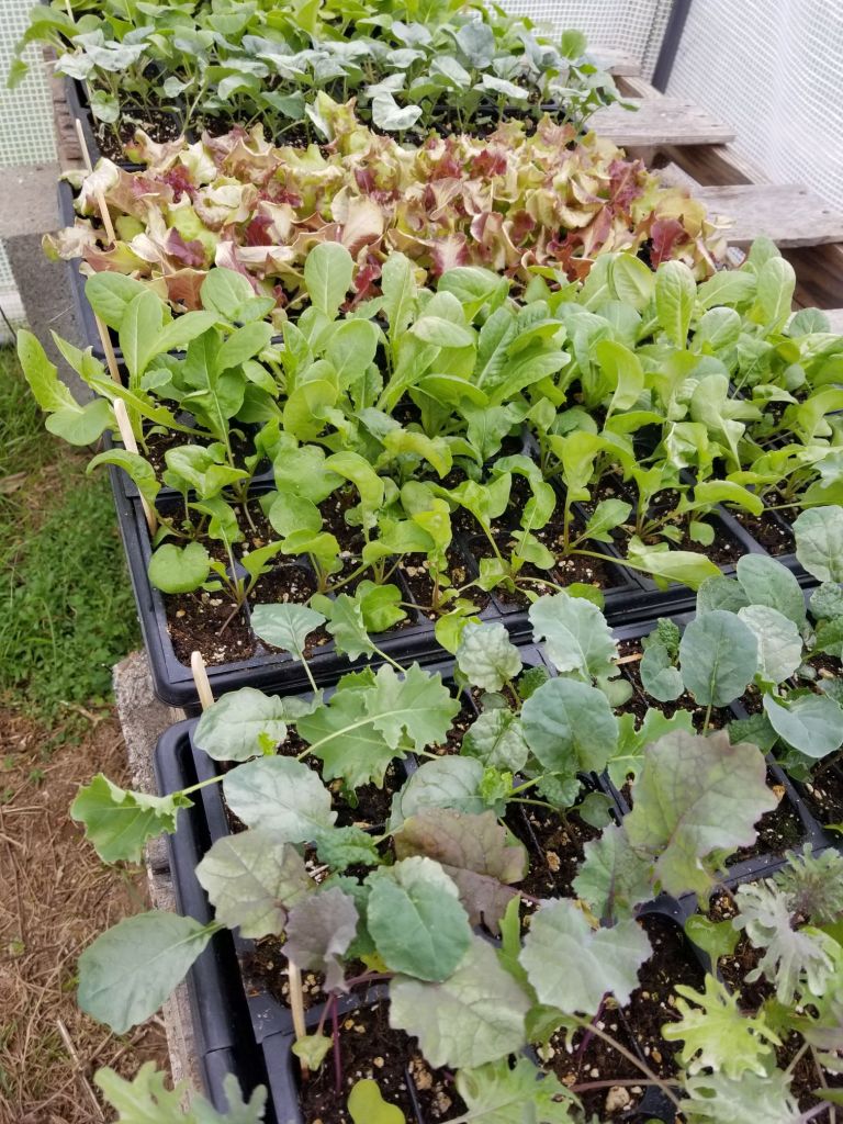 This week we will have lettuce (3 types) and a variety of brassicas (kales, cauliflower, broccoli, collard greens, arrugula, pac choi, cabbage and Napa cabbage)