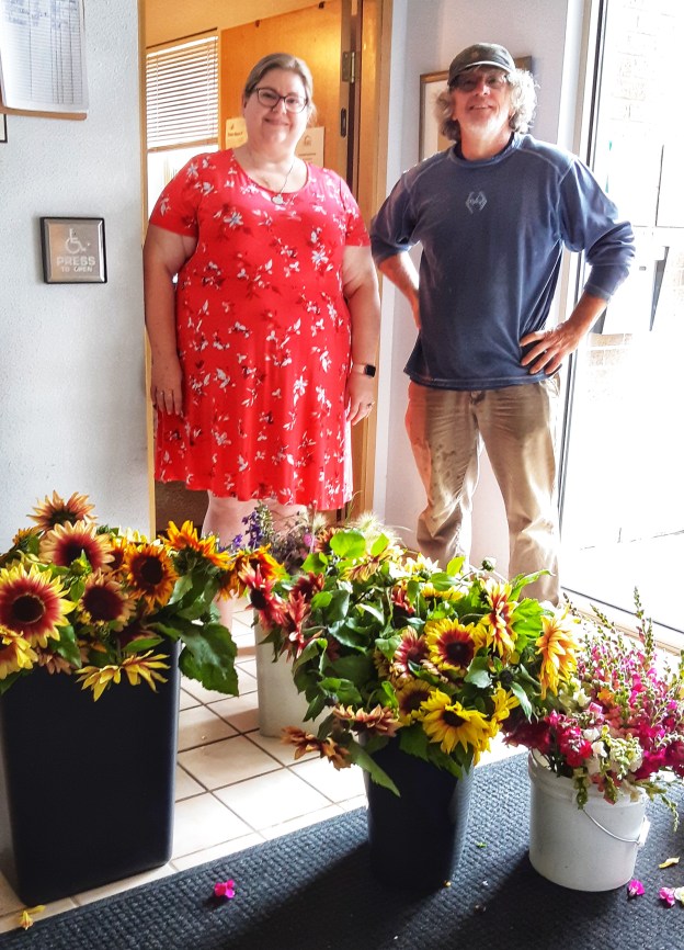What to do with a surplus of flowers? Brighten someone’s day, of course! Building Manager Aubrey was more than willing to round up a bunch of containers so seniors at the SHAG Apartments could make bouquets to bring a little summer into their homes.