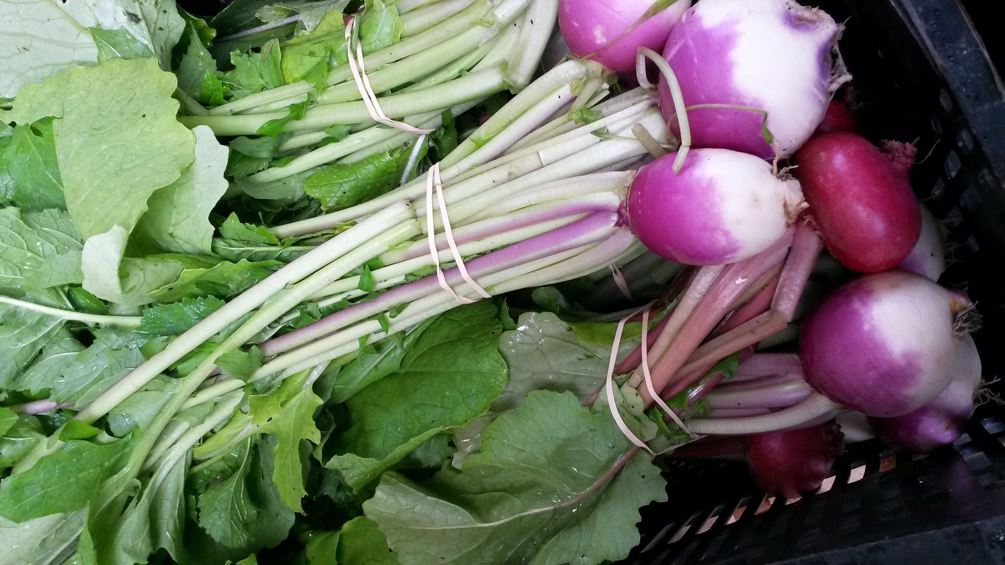 SALAD TURNIPS are a spring treat! Salad turnips are rich in Vitamin C, folic acid, and potassium as well as low in calories and high in dietary fiber.